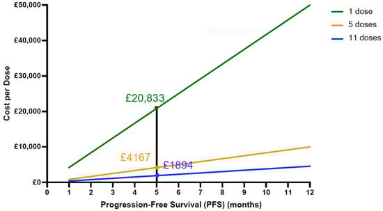 Administration of cost specifications for atezolizumab and pembrolizumab. Atezolizumab cost was calculated by multiplying its price by 2 to obtain the cost per one cycle and was then multiplied by 6 cycles. Similarly, pembrolizumab costs GBP 2630 · 2 per dose since one dose is 200 mg, multiplied by 4 cycles. Created from NICE [40,41].