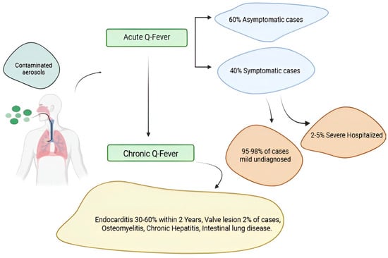 Q fever pathogenesis in acute and chronic forms. Figure was created using Biorender.com. Accessed on 29 December 2024.