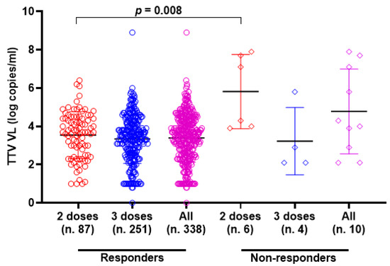 Pre-vaccine Log copies/mL TTV VL–median (IQR)2.5 (1.7–3.3)2.6 (2.0–3.2)