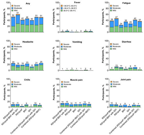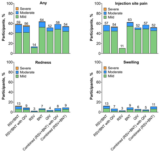 - Athan, E.; Baber, J.; Quan, K.; Scott, R.J.; Jaques, A.; Jiang, Q.; Li, W.; Cooper, D.; Cutler, M.W.; Kalinina, E.V.; et al. Safety and Immunogenicity of Bivalent RSVpreF Vaccine Coadministered With Seasonal Inactivated Influenza Vaccine in Older Adults. Clin. Infect. Dis. 2024, 78, 1360–1368. [Google Scholar] [CrossRef] [PubMed]