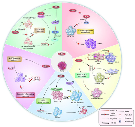 On the other hand, HDAC3 can induce immune cell dysfunction through multiple signaling pathways, thereby impairing the anti-tumor immune response.