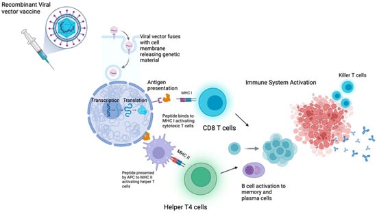 Mechanism of action of vector vaccines. MHC I, MHC II, APC. Created in BioRender. Gangane, S. (2025) https://BioRender.com/e73e024 (accessed on 30 January 2025).