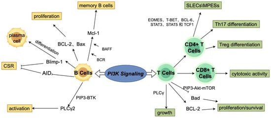 - Jellusova, J.; Rickert, R.C. The PI3K pathway in B cell metabolism. Crit. Rev. Biochem. Mol. Biol. 2016, 51, 359–378. [Google Scholar] [CrossRef]