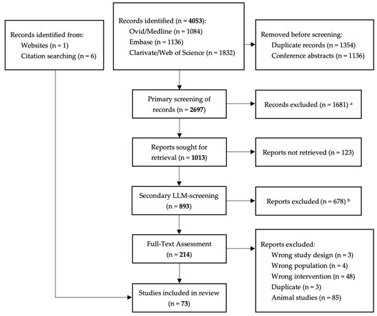 - Full-text assessment: Finally, a full-text assessment was completed by a reviewer (S.J.M.) for studies categorized as ‘inclusion’ or ‘maybe’ by the LLM to ensure they met all inclusion criteria.