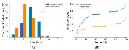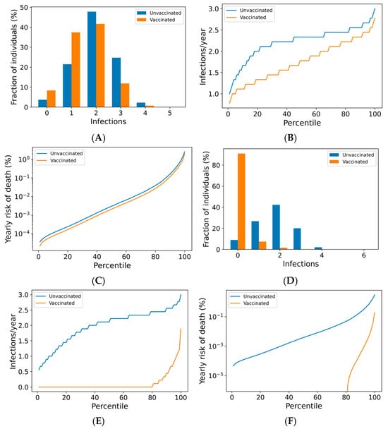 3.1. Boosting Frequency Determines Vaccine Efficacy Throughout the Population