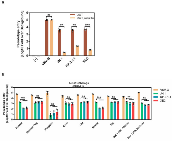 - Zhang, L.; Cheng, H.-H.; Krüger, N.; Hörnich, B.; Graichen, L.; Hahn, A.S.; Schulz, S.R.; Jäck, H.-M.; Stankov, M.V.; Behrens, G.M.N.; et al. ACE2-independent sarbecovirus cell entry can be supported by TMPRSS2-related enzymes and can reduce sensitivity to antibody-mediated neutralization. PLOS Pathog. 2024, 20, e1012653. [Google Scholar] [CrossRef]