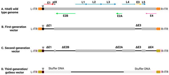 - Danthinne, X.; Imperiale, M.J. Production of first generation adenovirus vectors: A review. Gene Ther. 2000, 7, 1707–1714. [Google Scholar] [CrossRef]