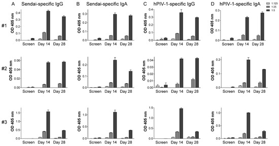 - Sealy, R.; Jones, B.G.; Surman, S.L.; Hurwitz, J.L. Robust IgA and IgG-producing antibody forming cells in the diffuse-NALT and lungs of Sendai virus-vaccinated cotton rats associate with rapid protection against human parainfluenza virus-type 1. Vaccine 2010, 28, 6749–6756. [Google Scholar] [CrossRef]