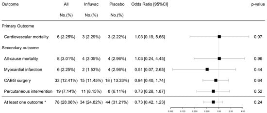 | Outcome | CAD-Placebo (n = 141) | CAD-FluVac (n = 137) | p-Value |