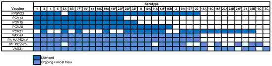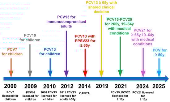In 2021, PCV15 and PCV20 were developed successively and licensed for adults, and in 2024, PCV21 was approved by the FDA [45,46,47].