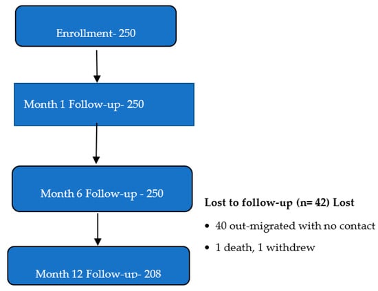 Participants who had lived in the community for more than one year were better retained in the study compared to recent arrivals. A longer duration of stay suggests stronger ties to the community and familiarity with local resources, both of which might enhance commitment to research participation and retention.