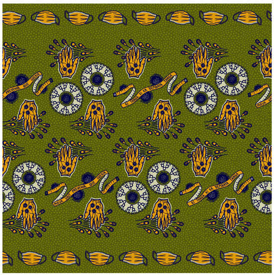 Materials for the public education intervention included the following: (1) two posters, (2) radio announcements, (3) a storytelling cloth design that adapted from prior GAIA VF organized vaccine promotion campaigns and produced by a local textile plant (Figure 1), and (4) a survey on COVID-19 vaccine attitudes and beliefs. Radio announcements began in September 2021 to advertise the intervention (a sample of the dialogue is provided in the Supplementary Materials). The posters provided descriptions of how COVID-19 is transmitted and instructions on how to protect yourself from contracting the virus in both French and Bambara, along with illustrations. The posters were displayed at each of the clinics and were publicly visible throughout the intervention (Supplemental Figure S2).