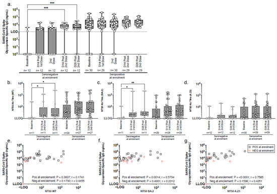 - Evans, J.P.; Zeng, C.; Carlin, C.; Lozanski, G.; Saif, L.J.; Oltz, E.M.; Gumina, R.J.; Liu, S.-L. Neutralizing antibody responses elicited by SARS-CoV-2 mRNA vaccination wane over time and are boosted by breakthrough infection. Sci. Transl. Med. 2022, 14, eabn8057. [Google Scholar] [CrossRef]