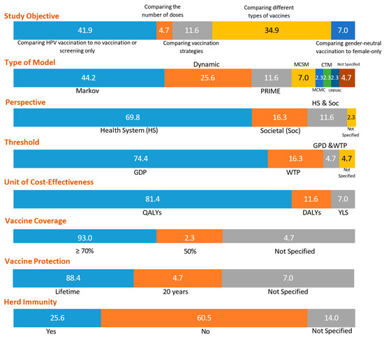 The characteristics of cost-effectiveness of HPV studies in percentage.