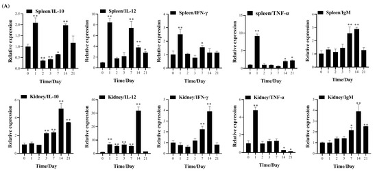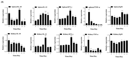 3.4. Transcription of Immune-Related Genes and Serum Neutralization in Largemouth Bass Post-Vaccination