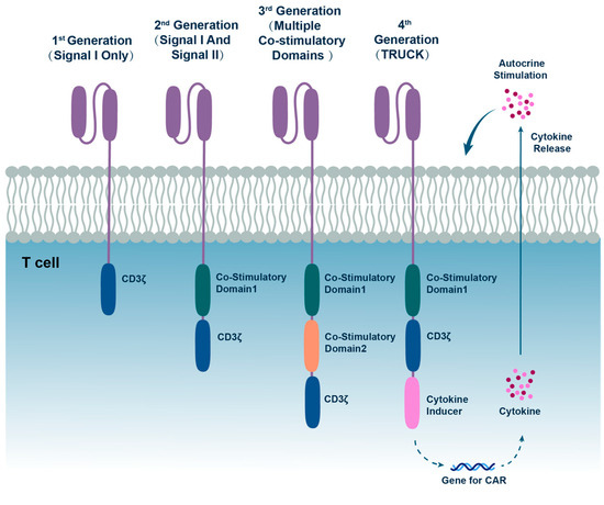 - Tang, L.; Pan, S.; Wei, X.; Xu, X.; Wei, Q. Arming CAR-T cells with cytokines and more: Innovations in the fourth-generation CAR-T development. Mol. Ther. 2023, 31, 3146–3162. [Google Scholar] [CrossRef] [PubMed]