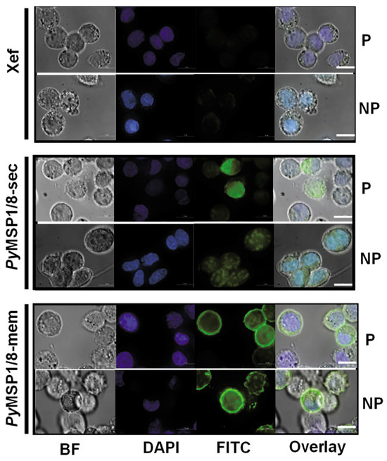 3.1. PyMSP1/8-Sec and PyMSP1/8-Mem mRNAs Are Expressed in Mammalian Cells