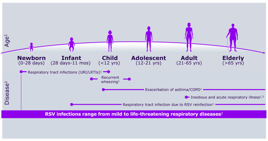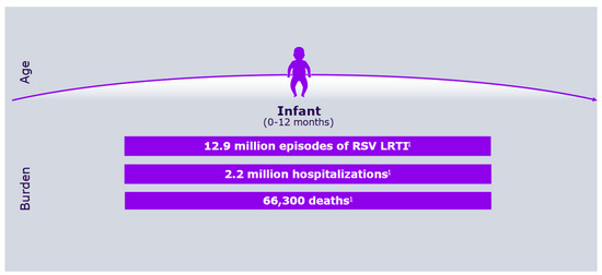 Respiratory syncytial virus (RSV) was first identified more than 50 years ago, alongside growing awareness of its substantial medical, social, and economic impact on the pediatric population [1,2]. Figure 1 shows RSV symptoms according to age group, whereas Figure 2 describes its burden in the first year of life.