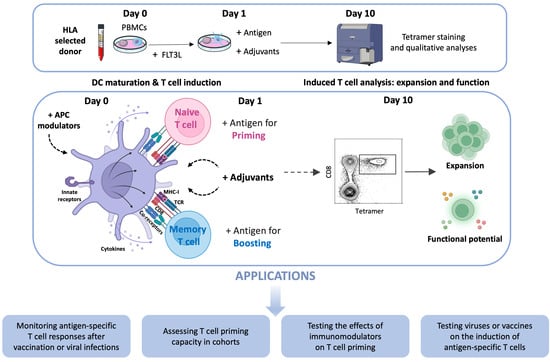 A human-based assay capable of studying the antigen-specific T cell priming process and amplifying T cell frequencies could help overcome some of these limitations. In this review, we discuss the development of such an in vitro approach and explore its various applications in vaccine research, including monitoring antigen-specific T cell responses, assessing individuals’ T cell priming capacities, and screening for potential adjuvants and vaccine candidates.