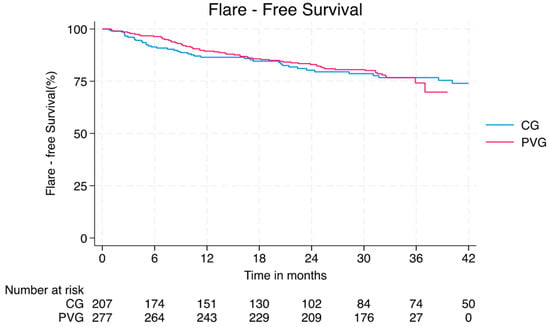 | Patients with New Manifestations: N (%) | CG (n = 34/223) | PVG (n = 26/284) | p-Value |