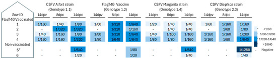 3.3. Absence of Viremia and Viral Shedding in Pregnant Sows Two Weeks After Single-Dose FlagT4G Vaccination