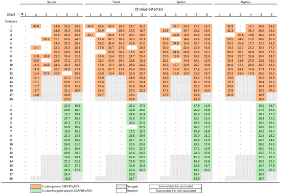 APA StyleCoronado, L., Cobos, À., Muñoz-Aguilera, A., Puente-Marin, S., Guevara, G., Riquelme, C., Heredia, S., Borca, M. V., & Ganges, L. (2025). Protection Against Transplacental Transmission of a Highly Virulent Classical Swine Fever Virus Two Weeks After Single-Dose FlagT4G Vaccination in Pregnant Sows. Vaccines, 13(8), 803. https://doi.org/10.3390/vaccines13080803