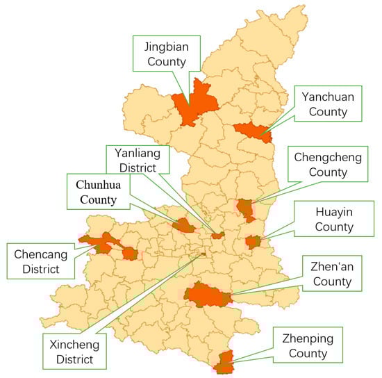 Geographical distribution map of sampling districts and counties in Shaanxi Province.