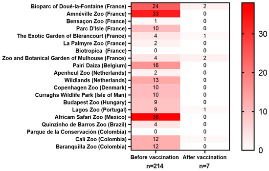 The vaccination campaigns took place in 29 European and American zoos, among which 20 shared their data on mortality before and after the vaccination (Figure 1).