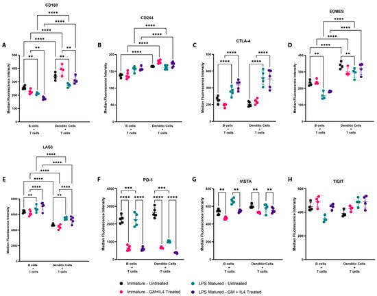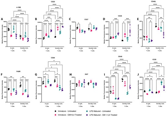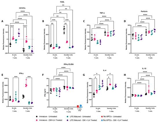 3.4. Priming by B Cells and DCs Resulted in Differences in Expression of Cytotoxicity-Related Markers, and IL-4 and IL-10, on CD8+ T Cells