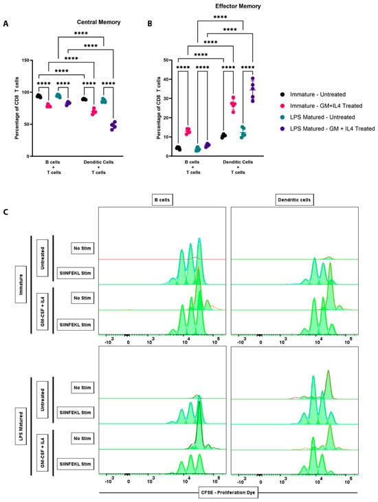 3.2. B Cells and DCs Both Generated Effector Memory CD8+ T Cells upon Stimulation and Resulted in CD8+ T Cell Proliferation