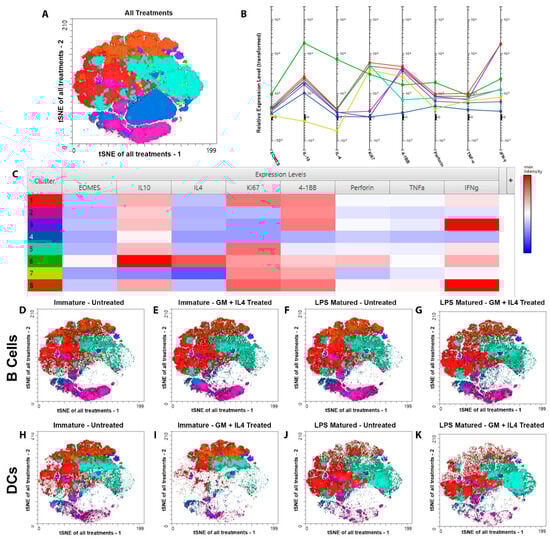 3.5. tSNE Analysis Revealed Different Phenotypes of CD8+ T Cells Resulting from Priming by B Cells and DCs