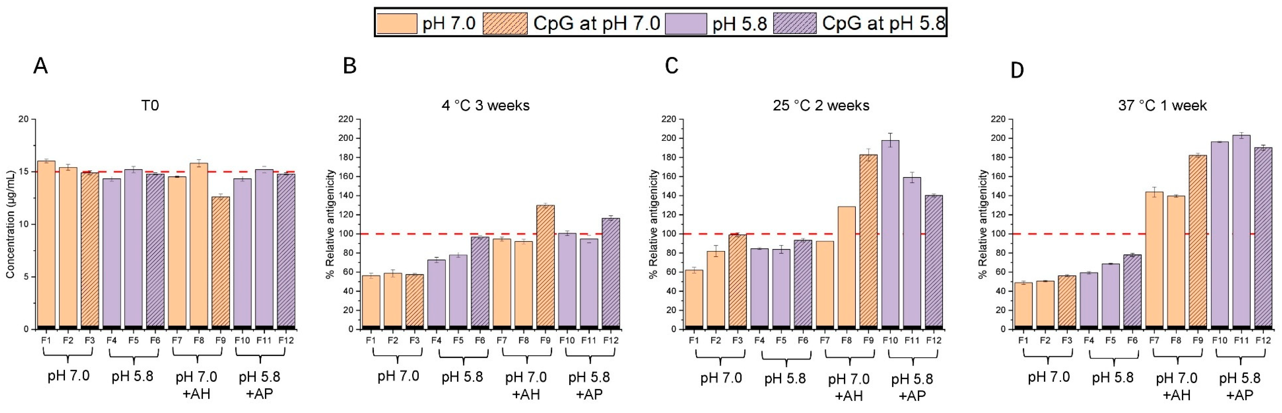 4.3.1. Antigen Stability in Different Aluminum Salt Adjuvanted Formulations