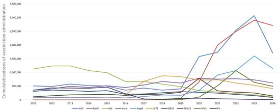 Chicago/Turabian StyleWang, Lei, Hao Li, Ling Zhang, and Dan Li. 2026. "Changed Trends in Utilization and Substitution Pattern of Non-National Immunization Program Vaccines in Central China, 2011–2024" Vaccines 14, no. 1: 16. https://doi.org/10.3390/vaccines14010016