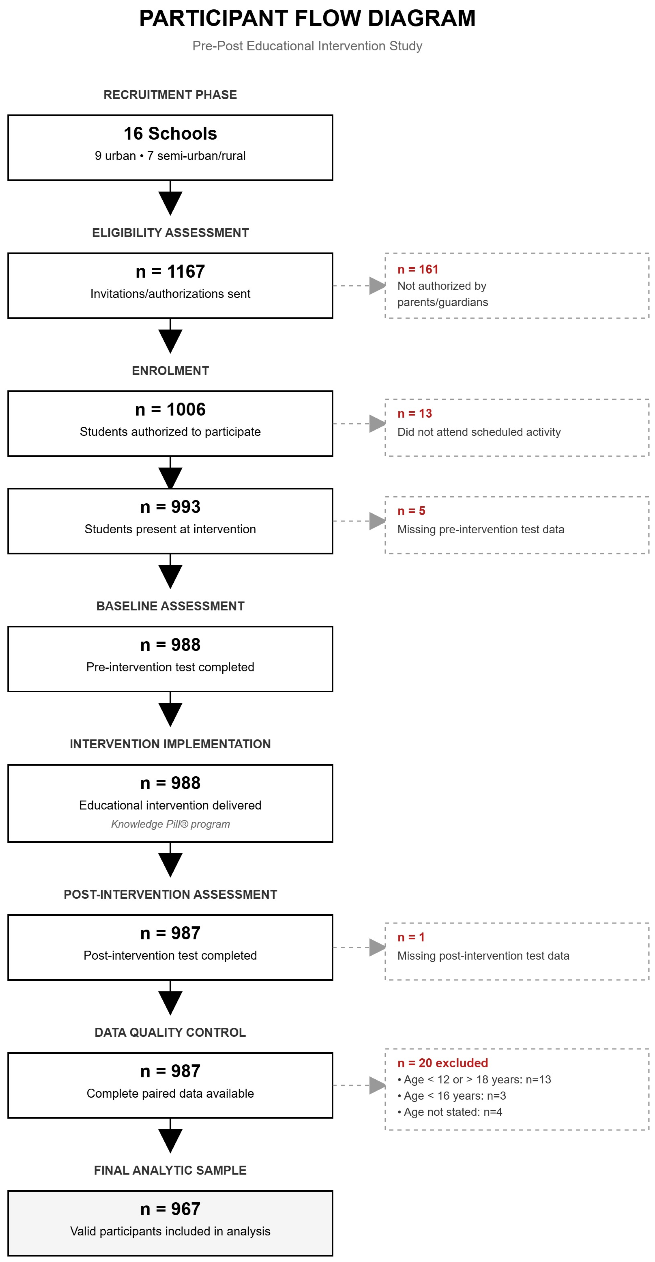 | Post-intervention | 897 (92.8%) d | 26 (2.7%) | 44 (4.6%) | 967 | ||
