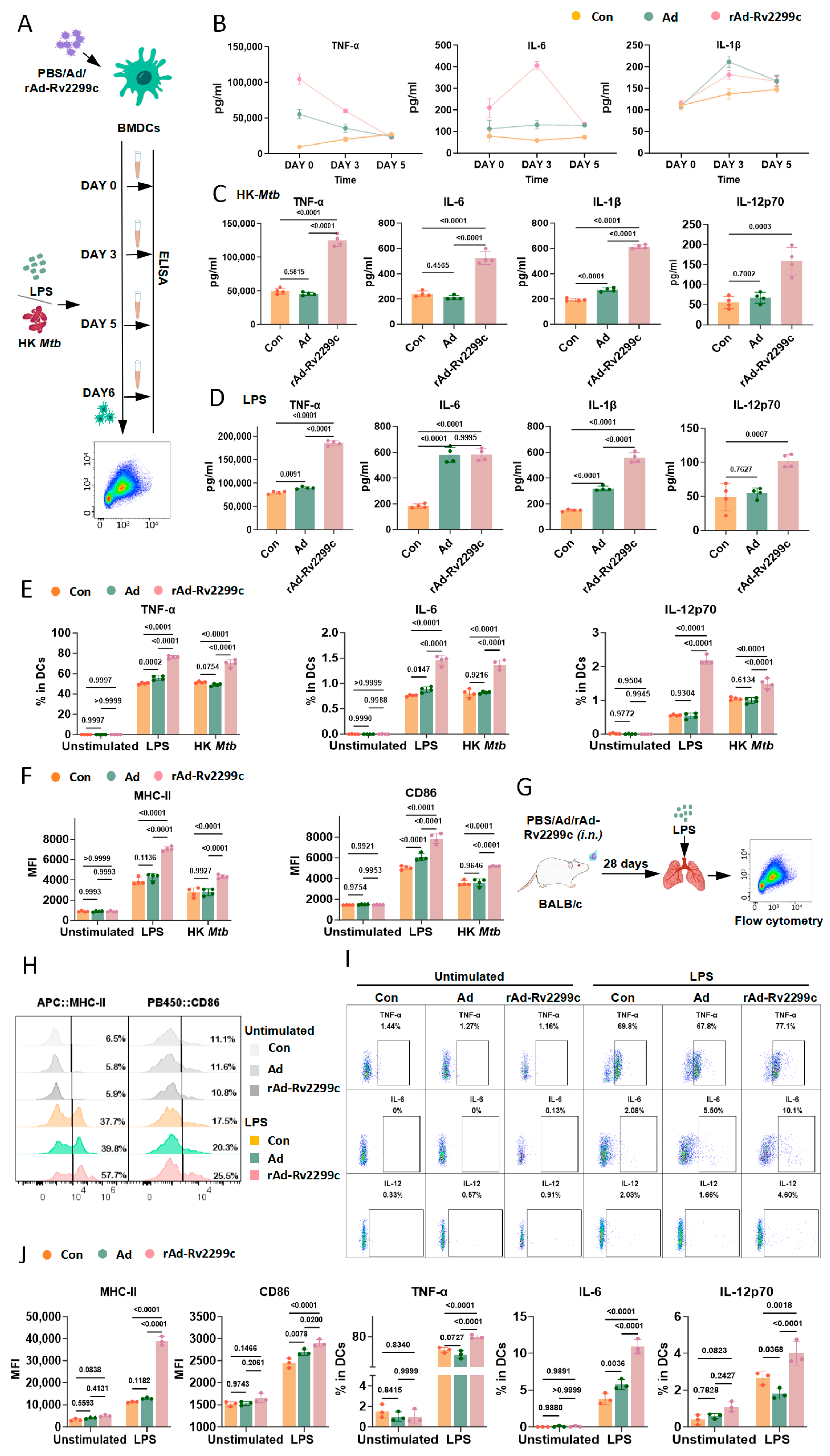 3.5. rAd-Rv2299c Enhances Anti-Mtb Recall Immune Responses
