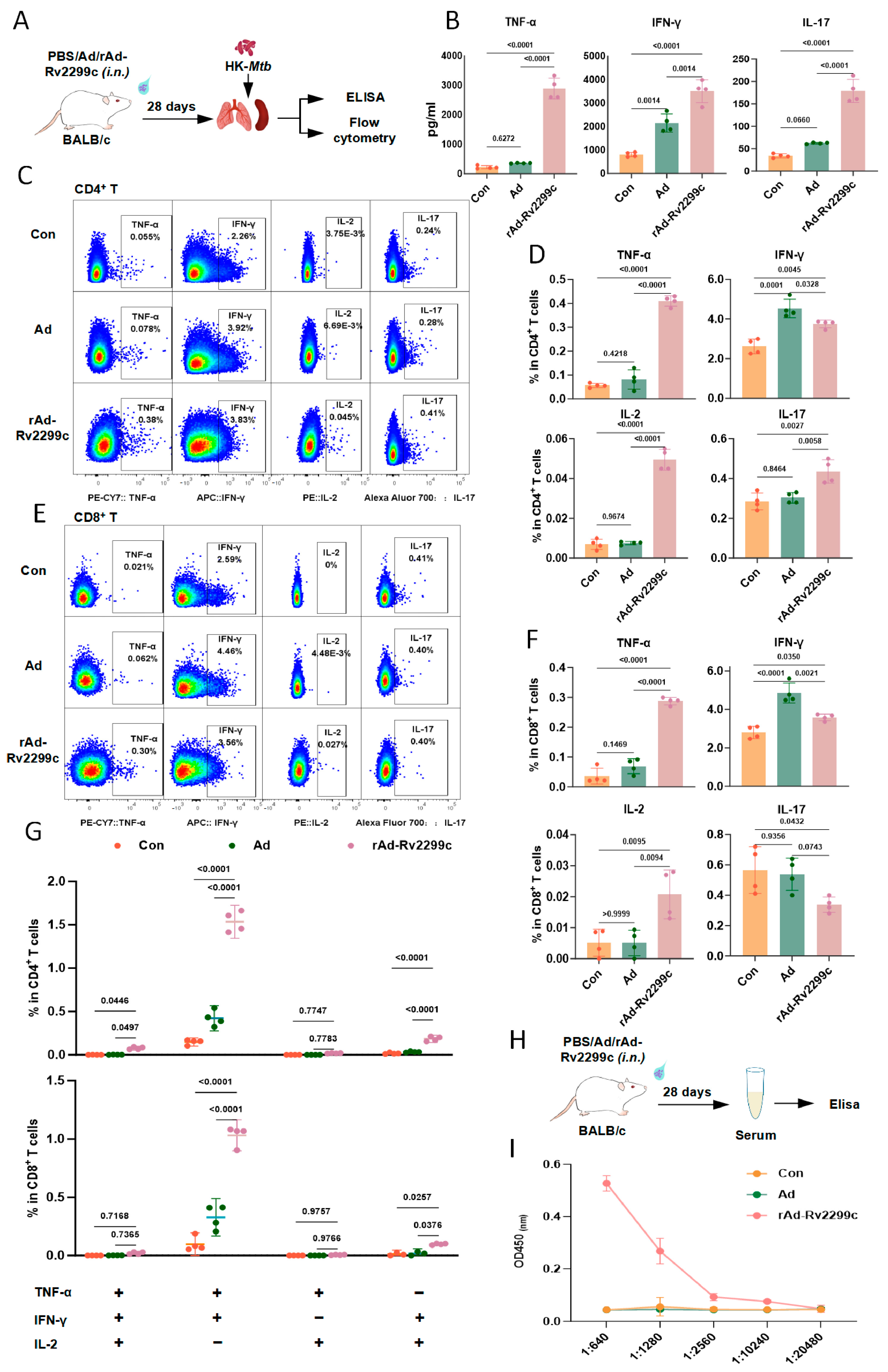 3.3. rAd-Rv2299c Immunization Elicits Antigen-Specific Adaptive Responses