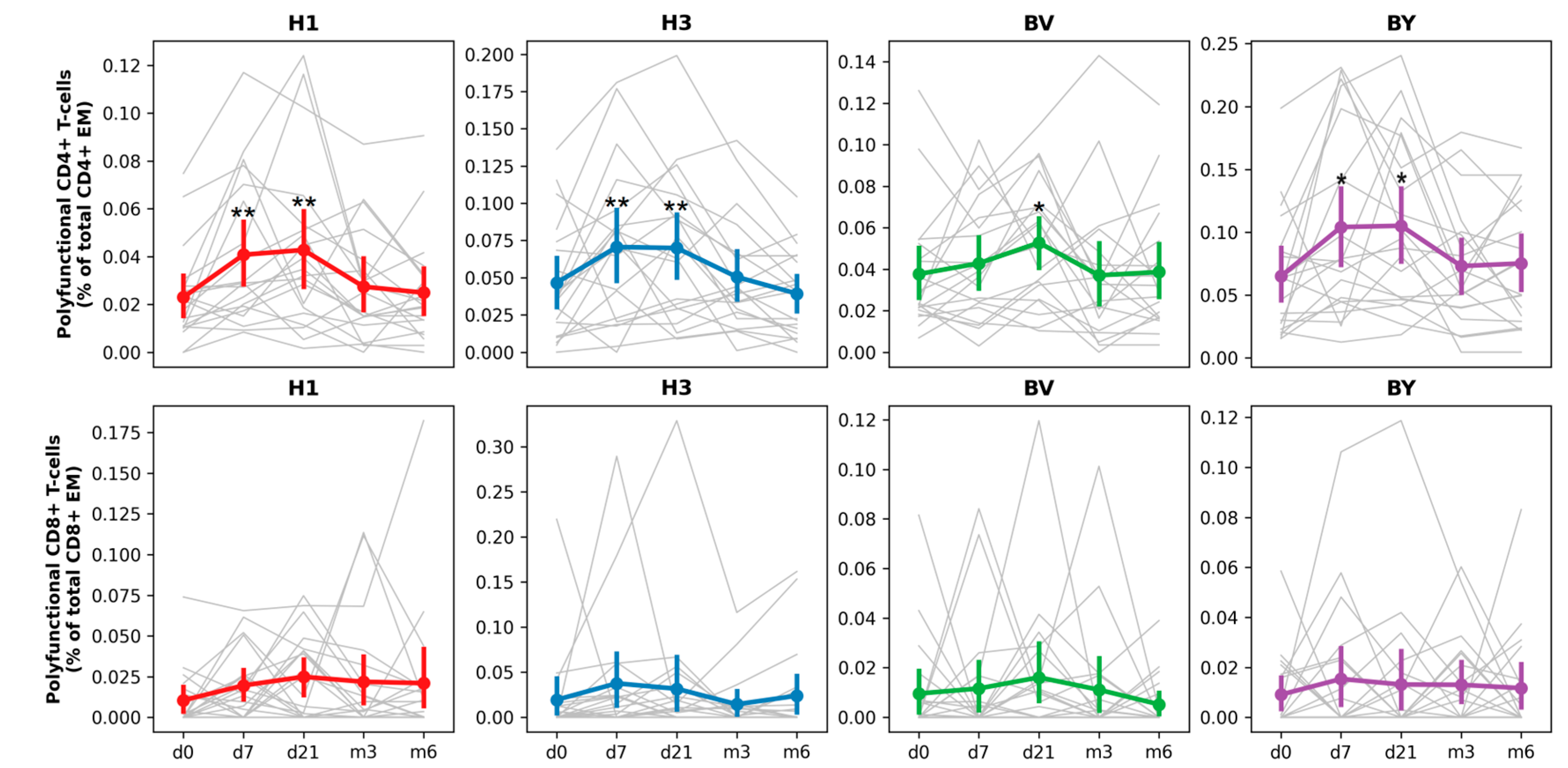 3.4. Effect of Repeated IIV Administration on the Post-Vaccination Immune Response