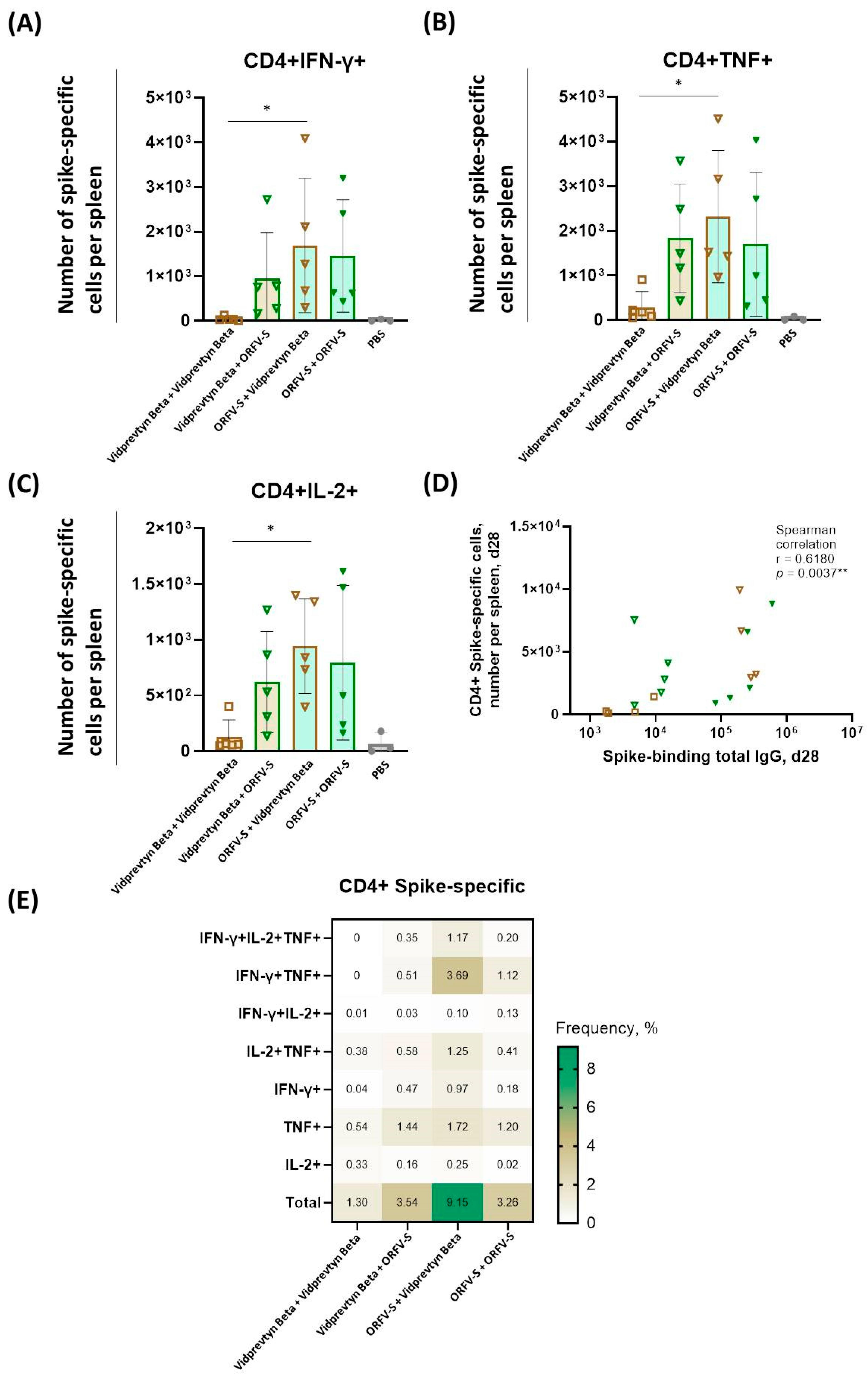 3.5. Spike-Specific CD4+ and CD8+ T Cell Responses