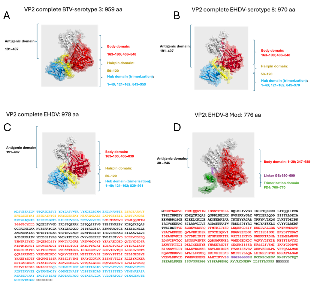 Jurado S, Jiménez-Cabello L, Nuñez MdC, Utrilla-Trigo S, Calvo-Pinilla E, Mazuecos-Aragonés I, Gutierrez JR, Falcón A, Ortego J, Escribano JM. Structure-Guided Engineering of Protein VP2 from Epizootic Hemorrhagic Disease Virus Maximizes Production and Confers Complete Protection as Subunit Vaccine. Vaccines. 2026; 14(1):7. https://doi.org/10.3390/vaccines14010007