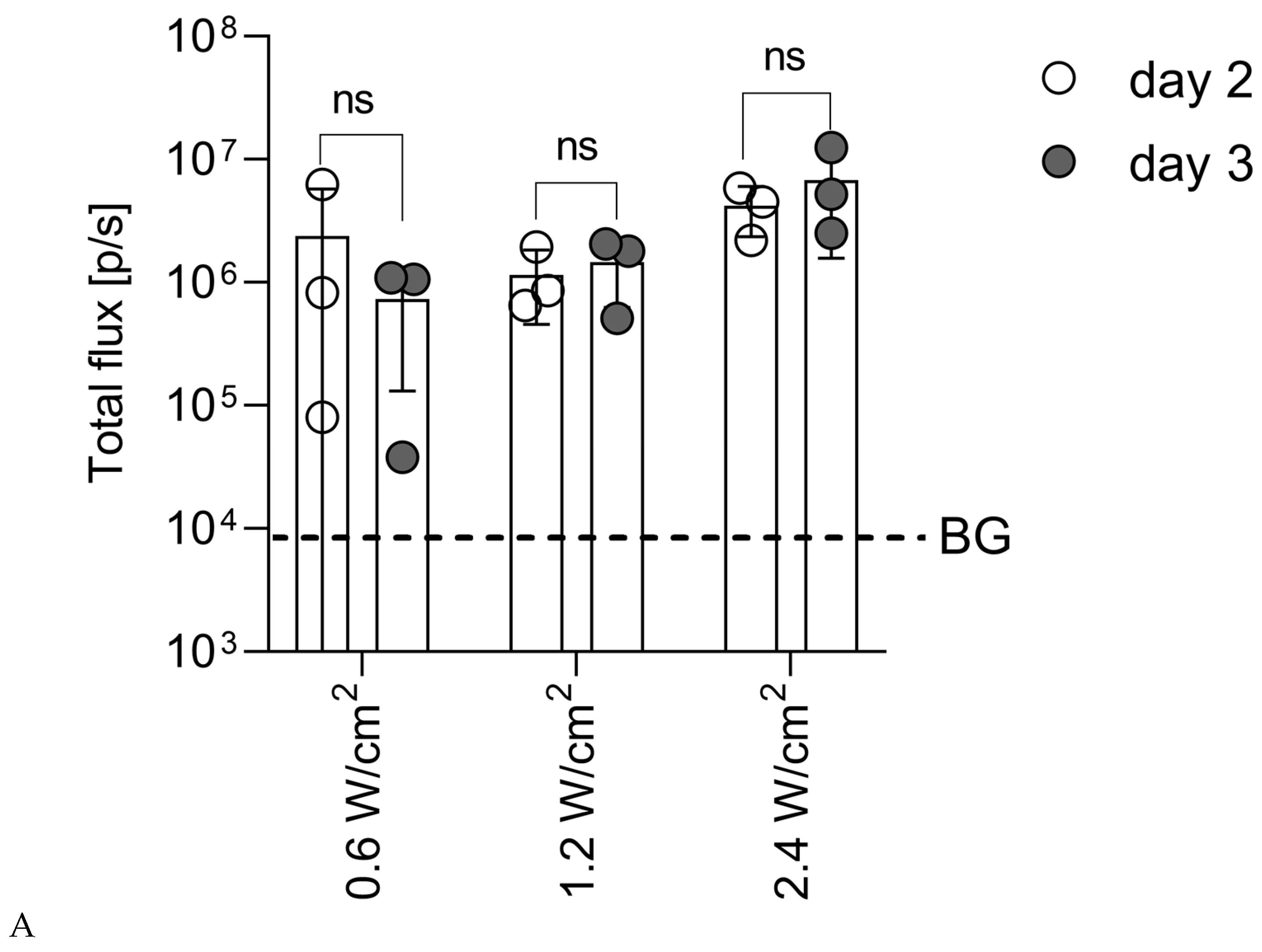 - Troy, T.; Jekic-McMullen, D.; Sambucetti, L.; Rice, B. Quantitative Comparison of the Sensitivity of Detection of Fluorescent and Bioluminescent Reporters in Animal Models. Mol. Imaging 2004, 3, 9–23. [Google Scholar] [CrossRef]
