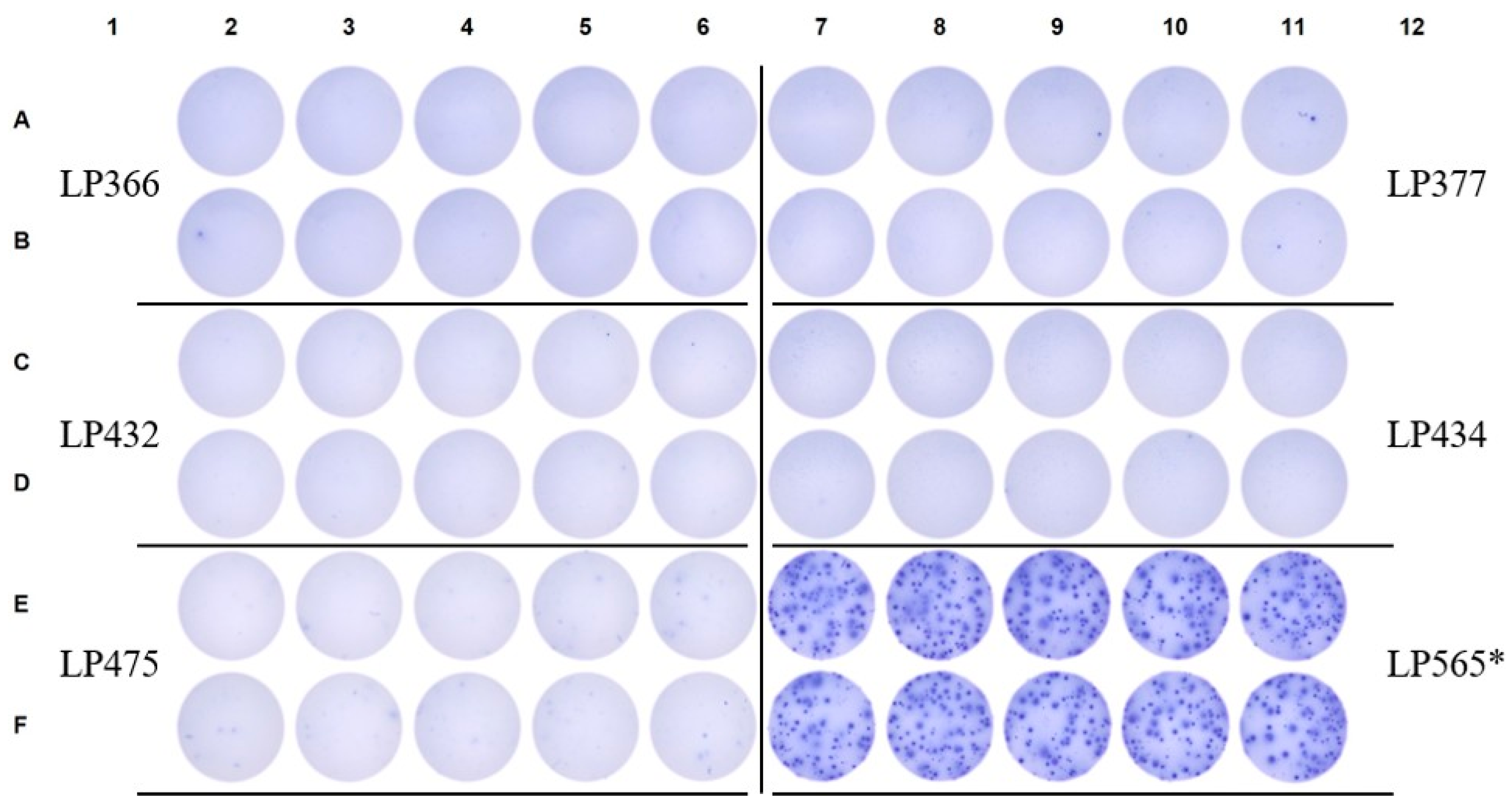 | Pre-COVID | LP366 | 0 | 0 | 1 | 0 | 39,800 * | Pan IgG (µ ± σ) 133,480 ± 103,032 | ||