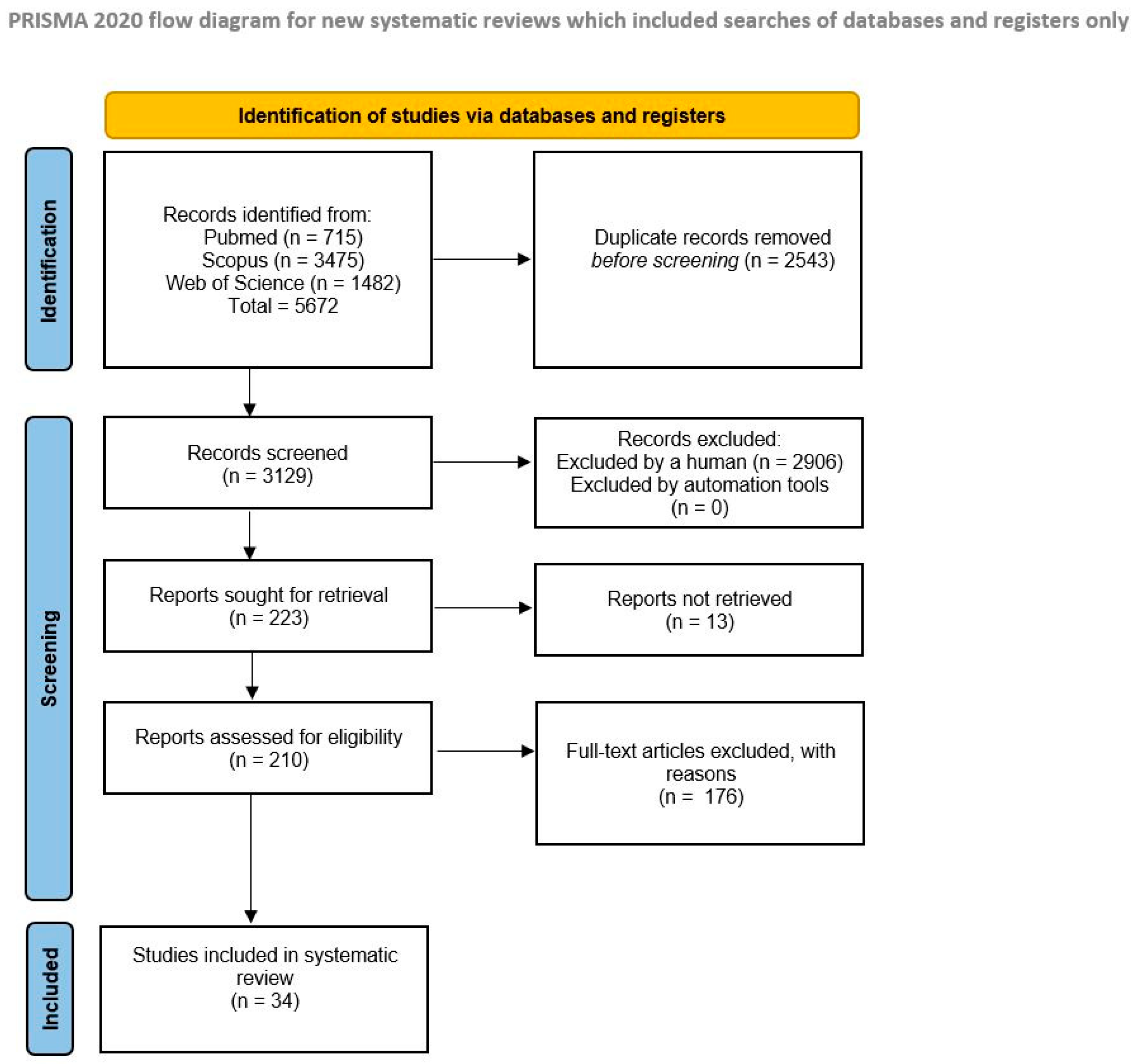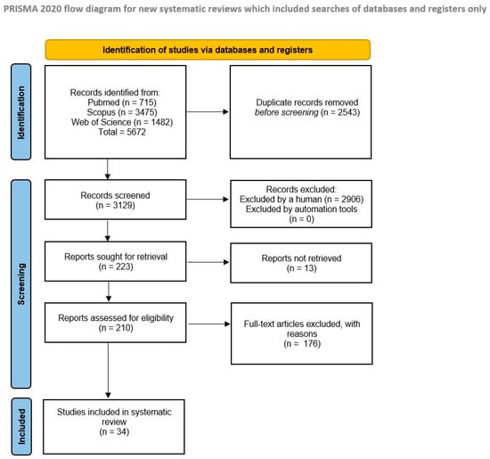 The search detected 715 articles in PubMed, 3475 in Scopus, and 1482 in Web of Science. One additional relevant case report not indexed in these databases was added manually. After screening and eligibility assessment, a total of 34 articles met the inclusion criteria (Figure 1). Most studies investigated the risk of HPV transmission during surgical procedures involving HPV-related lesions.