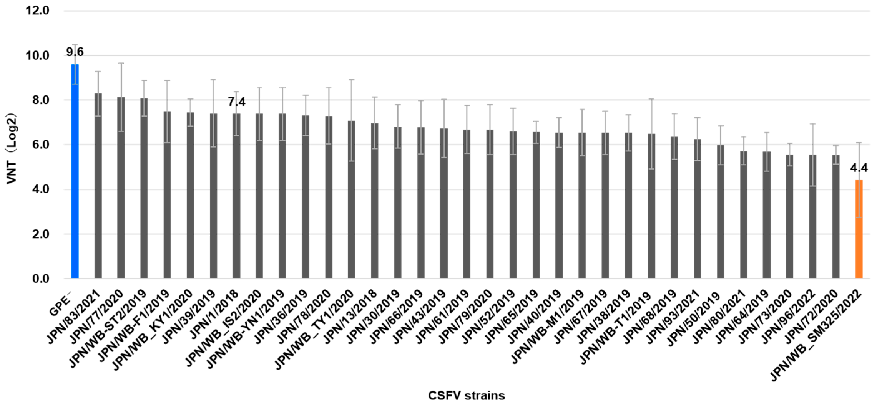 3.1. Neutralizing Reactivity of GPE− Vaccine-Induced Antisera Against Japanese Epidemic CSFV Strains