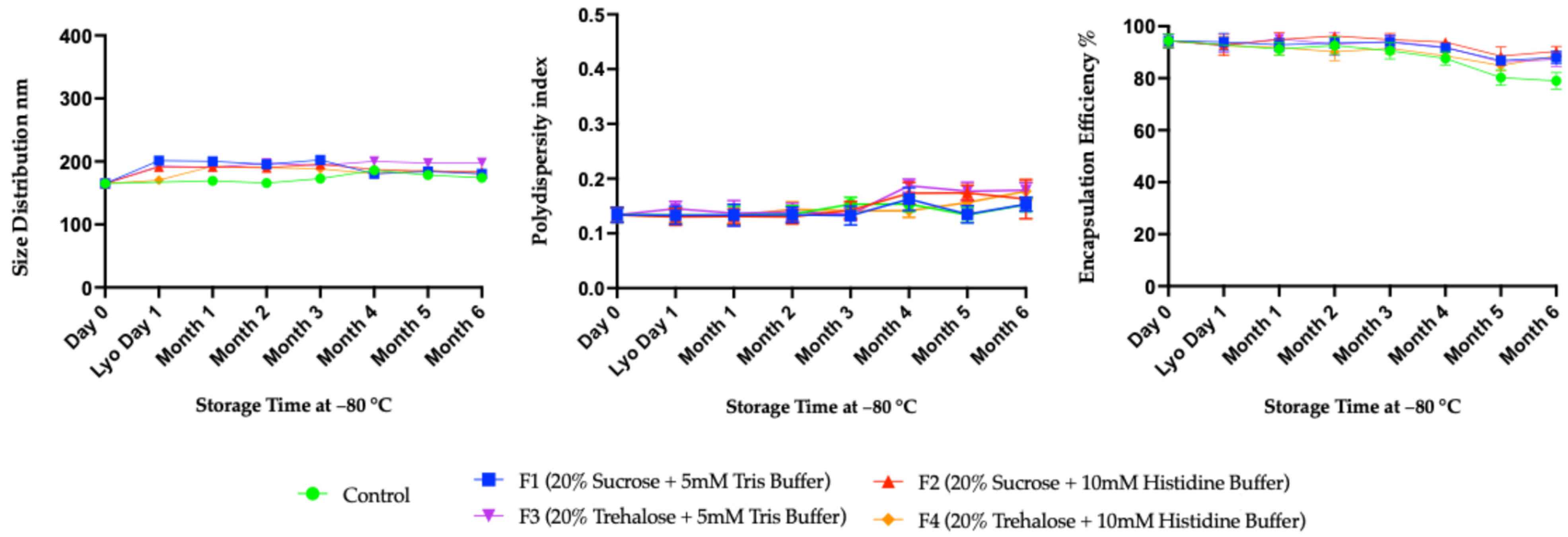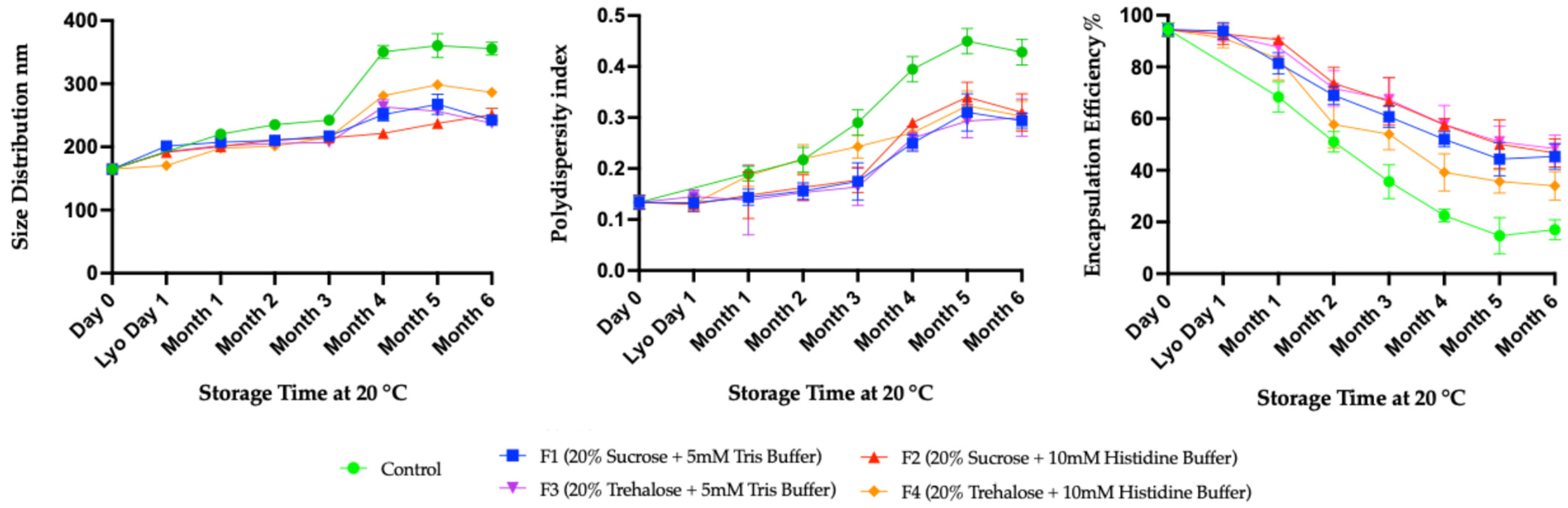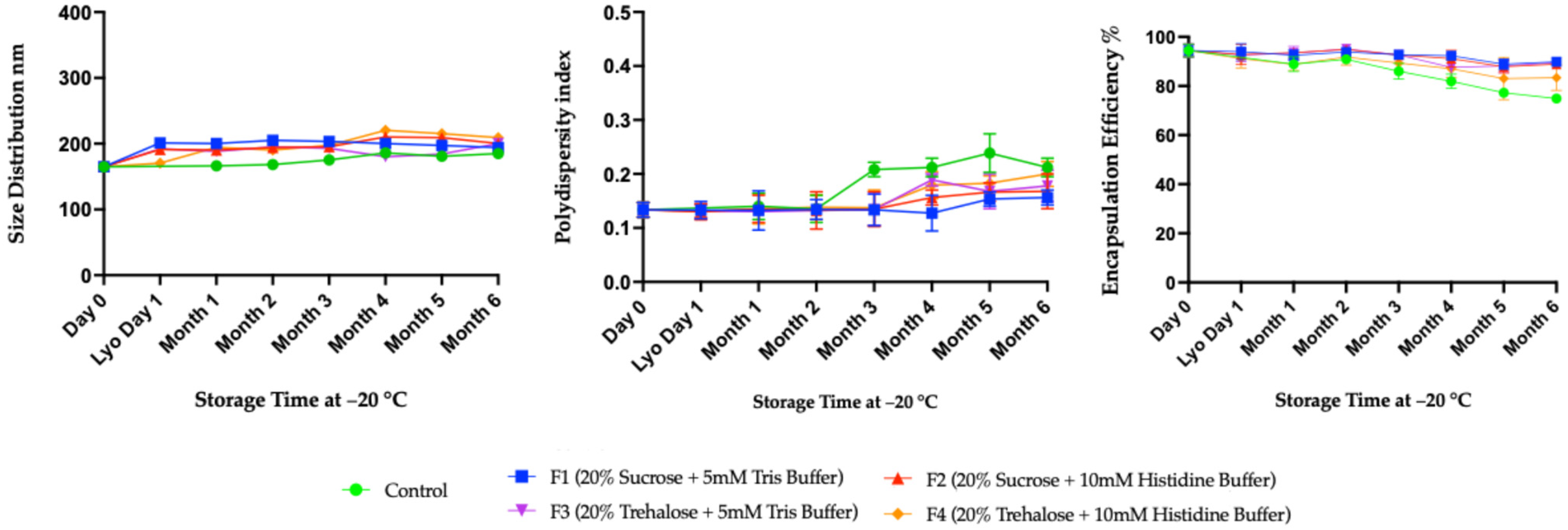 4.3. Role of Excipients in Preserving Particle Size and Polydispersity During Lyophilization