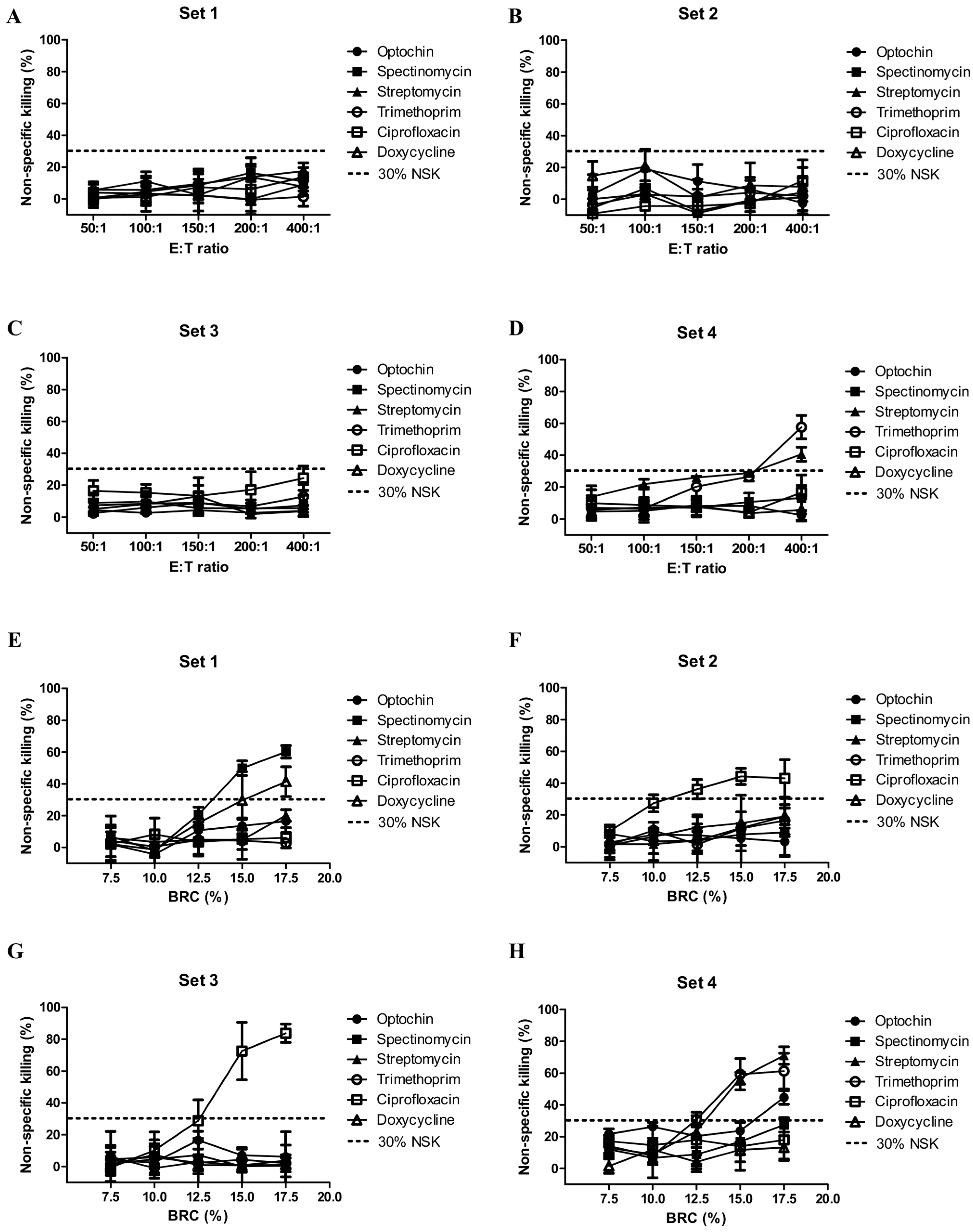 | Spectinomycin1 | 53 ±0.8 | 52 ±2.3 | 4 ±0.0 | 49 ±3.8 | 49 ±2.1 | 28 ±6.7 | 21 ±0.6 | 4 ±0.0 |