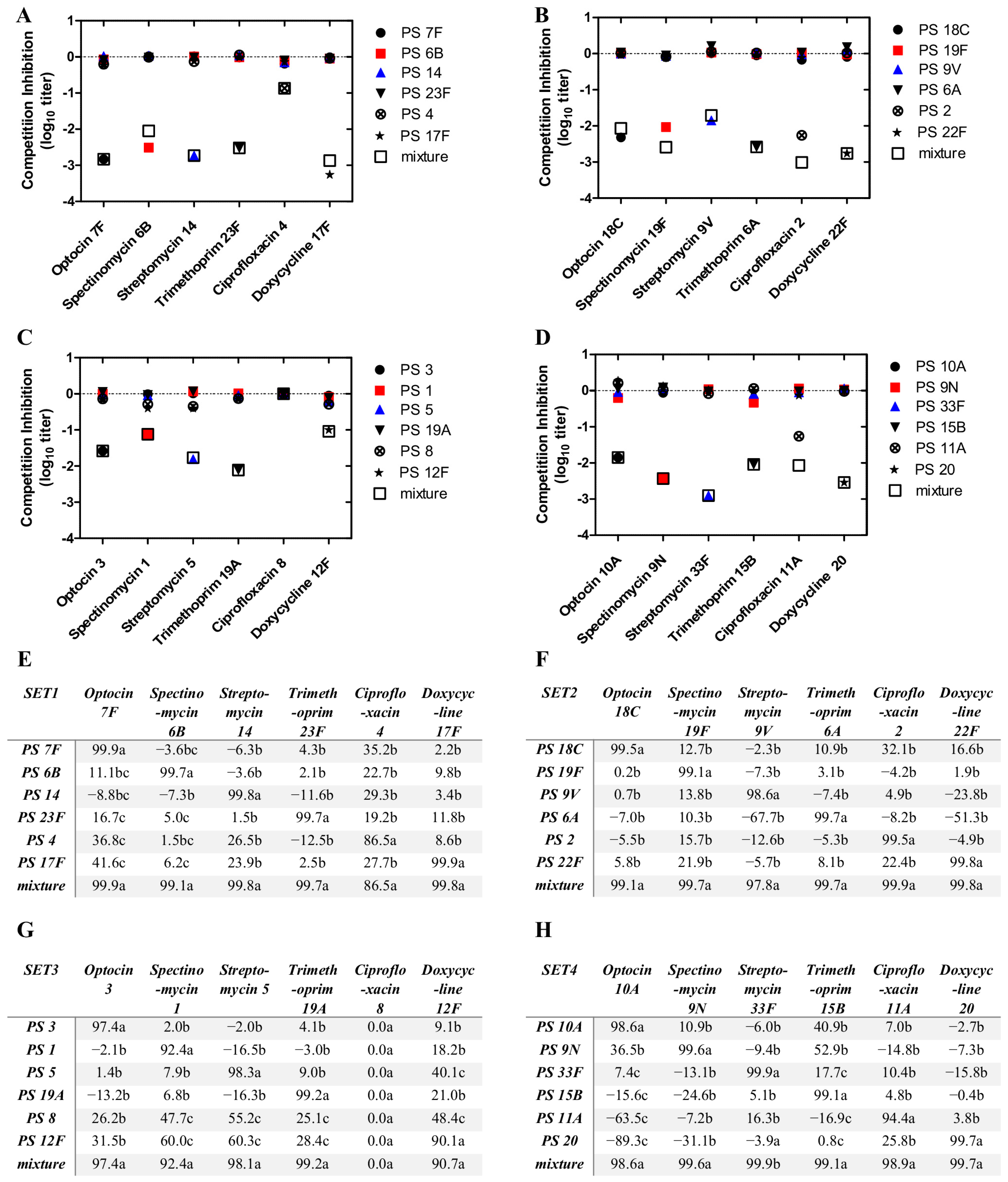 | Spectinomycin 19F | 1563 ±124.4 | 1364 ±90.1 | 15 ±1.7 | 1347 ±37.6 | 1402 ±8.4 | 1318 ±114.2 | 1220 ±16.0 | 4 ±0.0 |