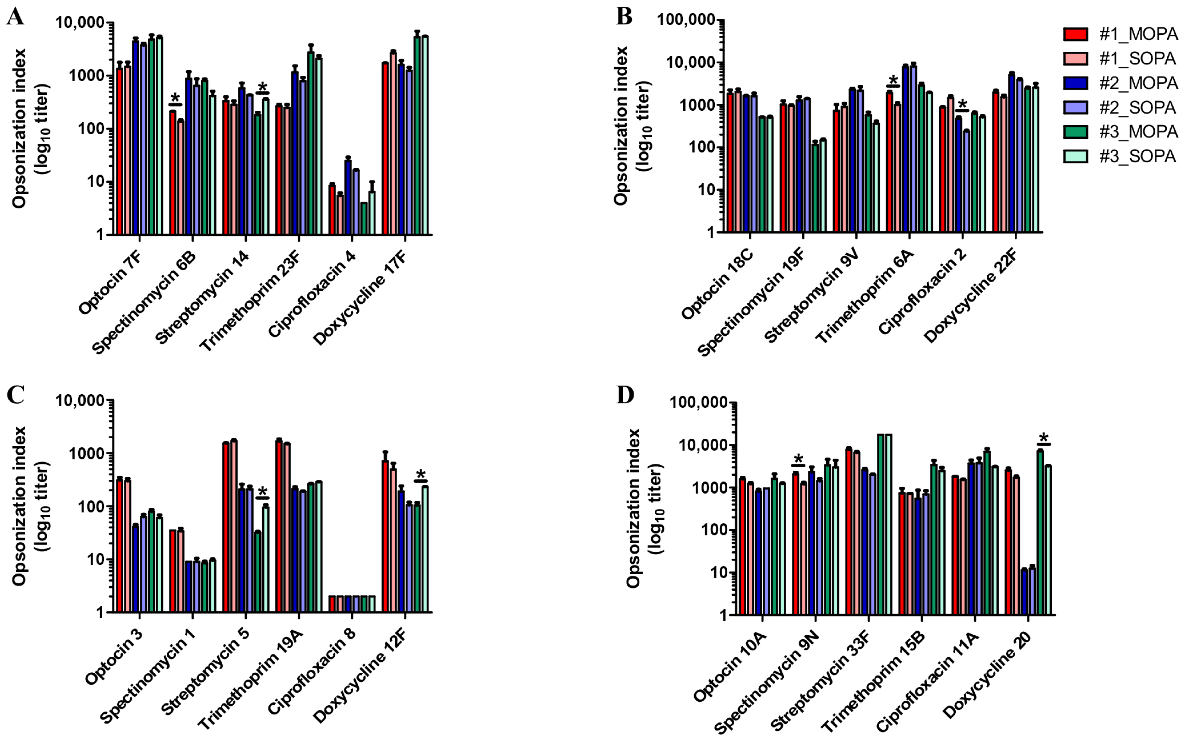 - Burton, R.L.; Nahm, M.H. Development and validation of a fourfold multiplexed opsonization assay (MOPA4) for pneumococcal antibodies. Clin. Vaccine Immunol. 2006, 13, 1004–1009. [Google Scholar] [CrossRef]