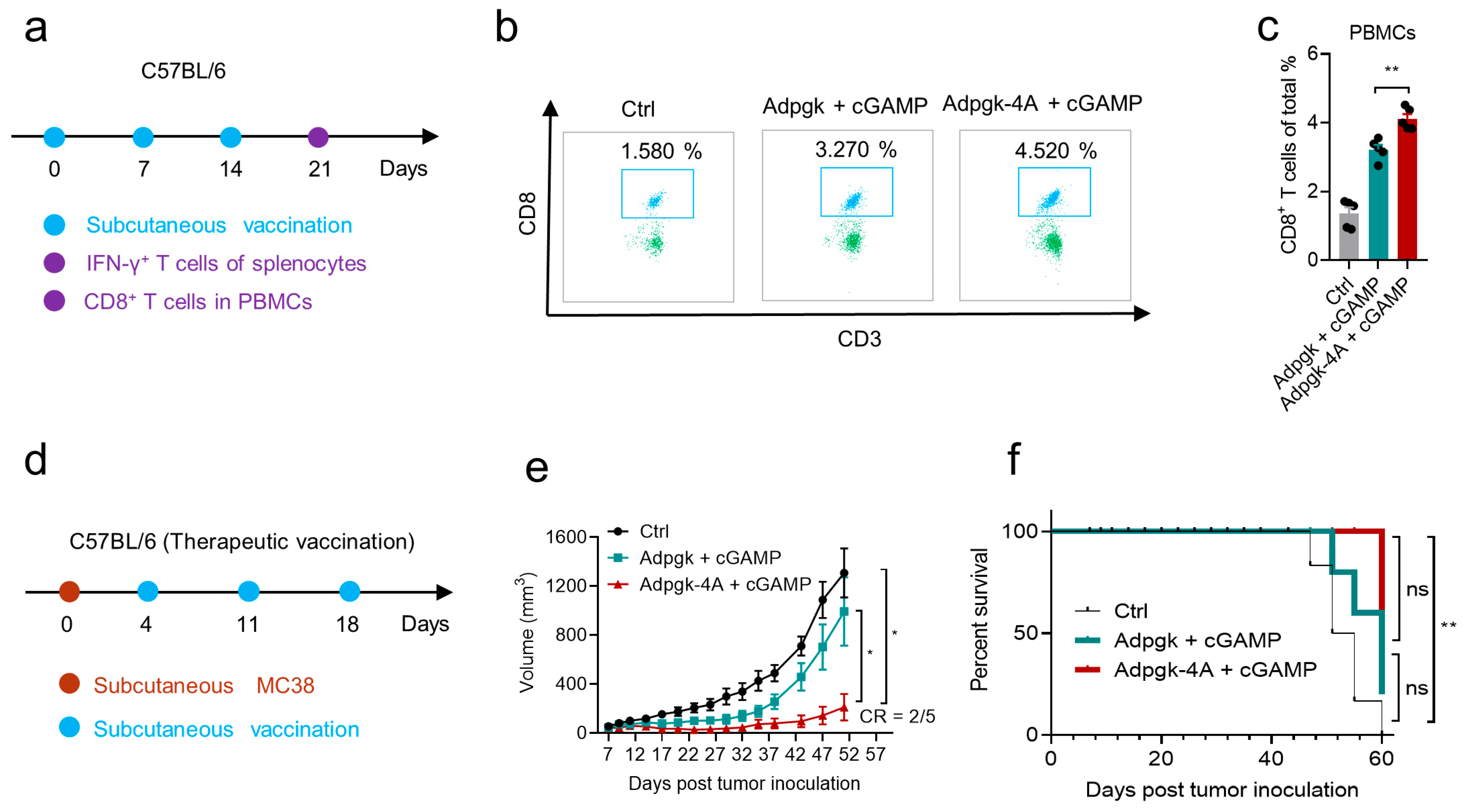 3.5. Peptide and cGAMP Coacervates Vaccination Induce Epitope-Specific T Cell Response and Inhibit Tumor Growth