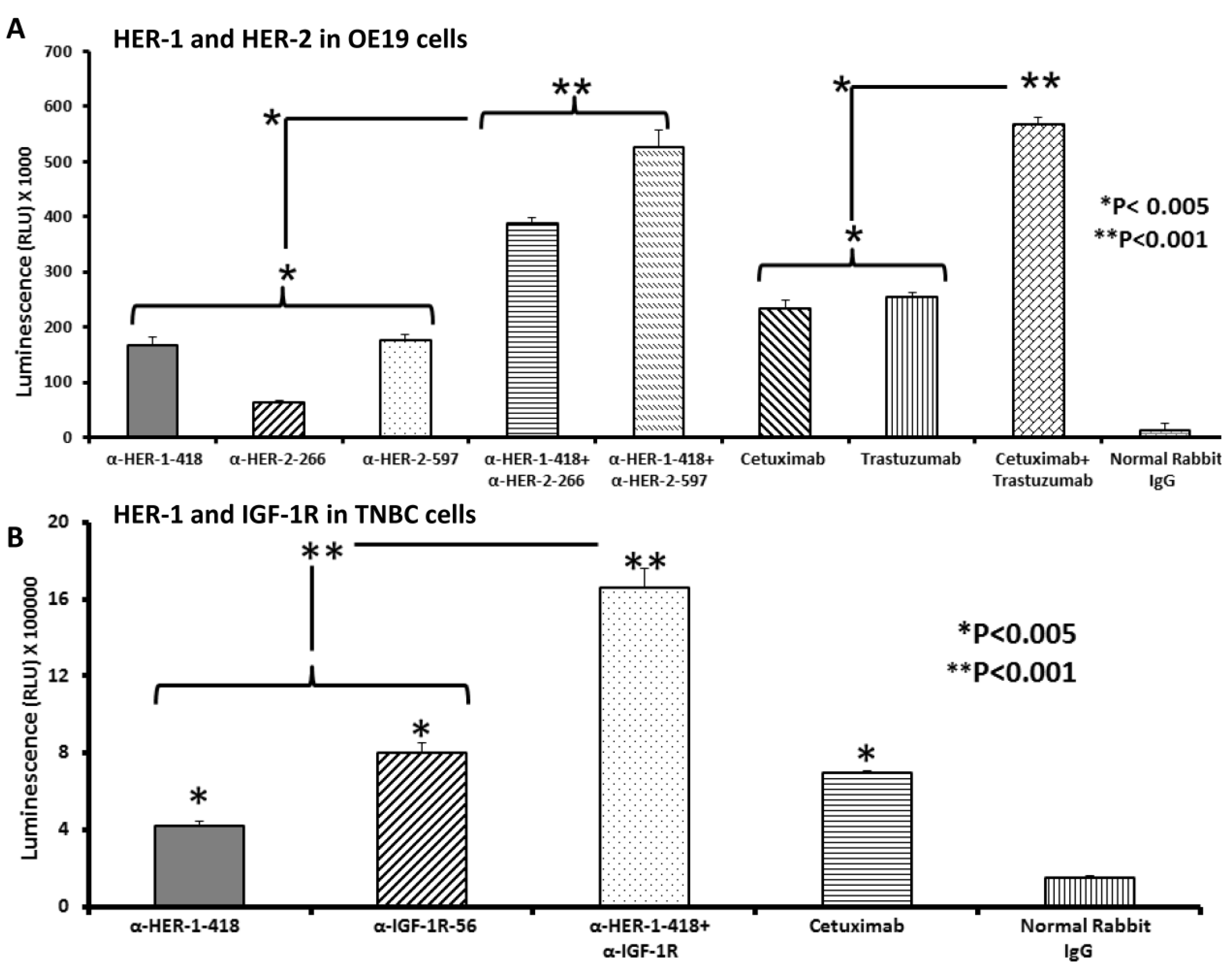 Anti-Tumor Effects of Peptide Therapeutic and Peptide Vaccine Antibody Co-targeting HER-1 and HER-2 in Esophageal Cancer (EC) and HER-1 and IGF-1R in Triple-Negative Breast Cancer (TNBC)