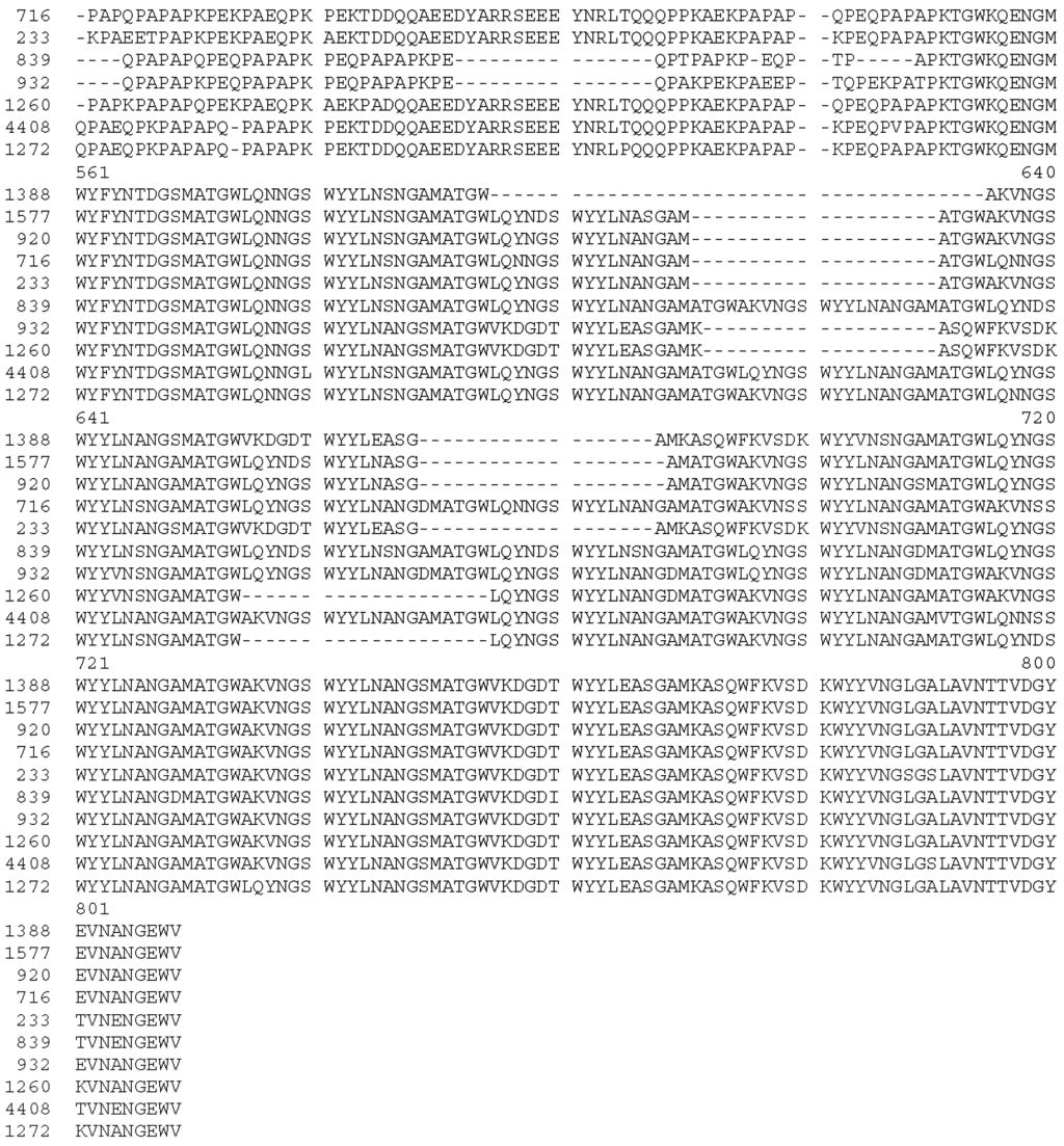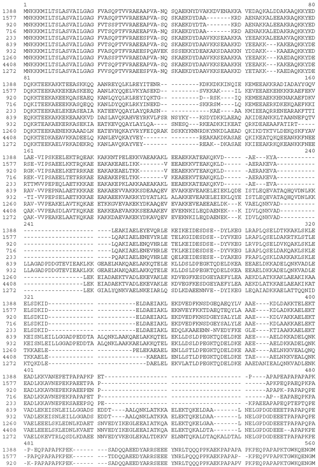 Alignment of deduced amino acid sequences of PspA of the tested S. pneumoniae clinical isolates. The alignment was performed with Multalin (http://multalin.toulouse.inra.fr/multalin/multalin.html). Gaps were inserted to give the best fit.